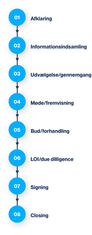 Her på siden kan du læse mere om den typiske købsproces og om muligheden for at eksekvere en målrettet opkøbsstrategi gennem et dedikeret opkøbssamarbejde.